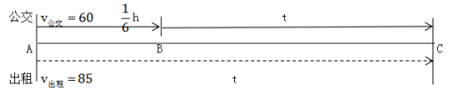 =10千米。此時某人乘出租車從A、公交車從B同時出發(fā),到C點出租車追上公交車(運動時間相等),設(shè)出租車追公交車的時間為t,由直線追及公式