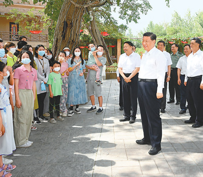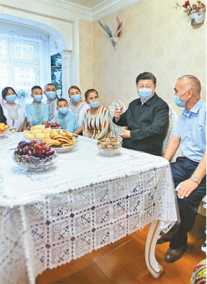 7月12日至15日,中共中央總書記、國家主席、中央軍委主席習近平在新疆考察。這是13日上午,習近平在烏魯木齊市天山區(qū)固原巷社區(qū)考察時,同各族群眾在一起。新華社記者謝環(huán)馳攝