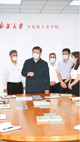 12日下午,習近平在新疆大學鑄牢中華民族共同體意識研究基地,同師生親切交流。新華社記者李學仁攝