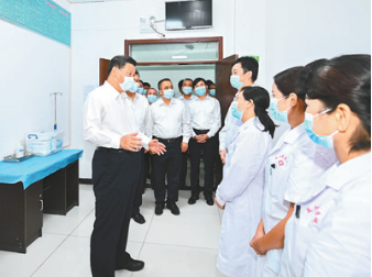 14日,習近平在吐魯番市高昌區(qū)亞爾鎮(zhèn)新城片區(qū)新城西門村黨群服務(wù)中心醫(yī)務(wù)室考察。新華社記者燕雁攝