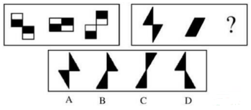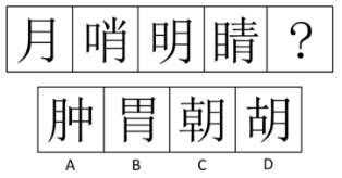 【答案】B【解析】觀察圖形,圖形相異,存在相同組成部分“月”字,但無法選出答案,可考慮數(shù)量關(guān)系,由于全是漢字,且封閉區(qū)域較多,可優(yōu)先數(shù)封閉區(qū)域數(shù)。題干各圖形封閉區(qū)域數(shù)(獨立的白色整體)為2、3、4、5?!?/span>?”處應(yīng)填入為6的選項。選項中只有B滿足,故正確答案為B。