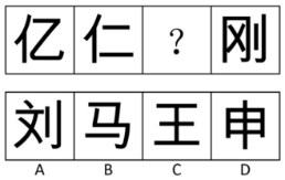 【答案】B【解析】觀察圖形,圖形均是元素組成相似的漢字,因此優(yōu)先考慮漢字元素求同。漢字均為上下結(jié)構(gòu),且都含有“艸”,“?”應(yīng)填入同為上下結(jié)構(gòu)且同樣含有“艸”的漢字。選項中只有B選項滿足,故正確答案為B。